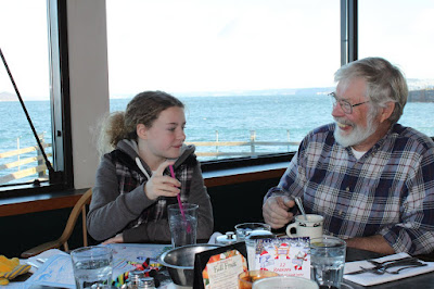 Margie waiting for her shrimp